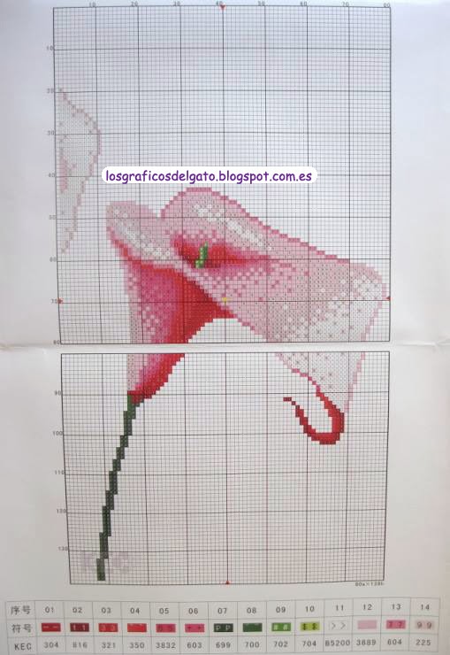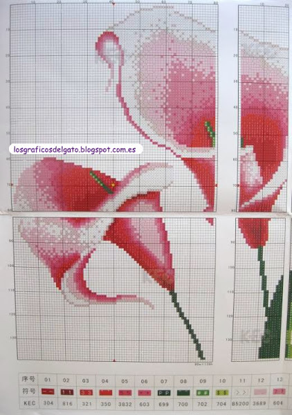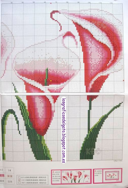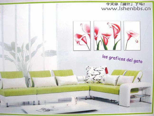 Precioso gráfico de un tríptico de calas rosas...