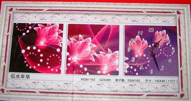 Precioso gráfico de un tríptico de flores con reloj...