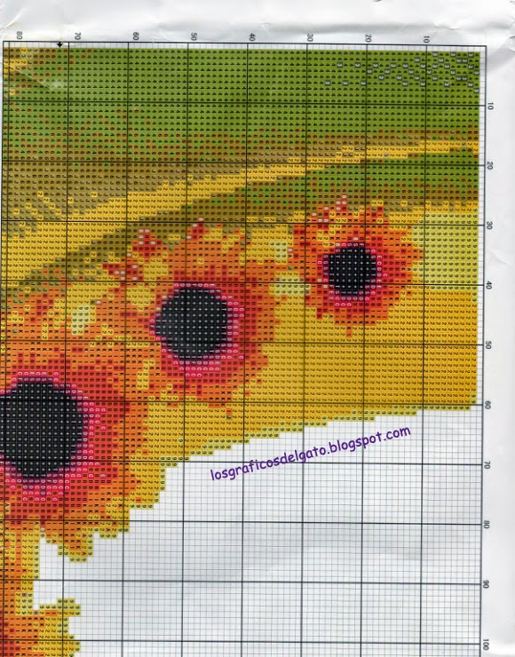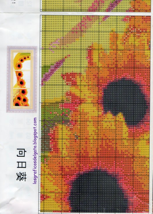 Precioso gráfico de un triptico de girasoles...