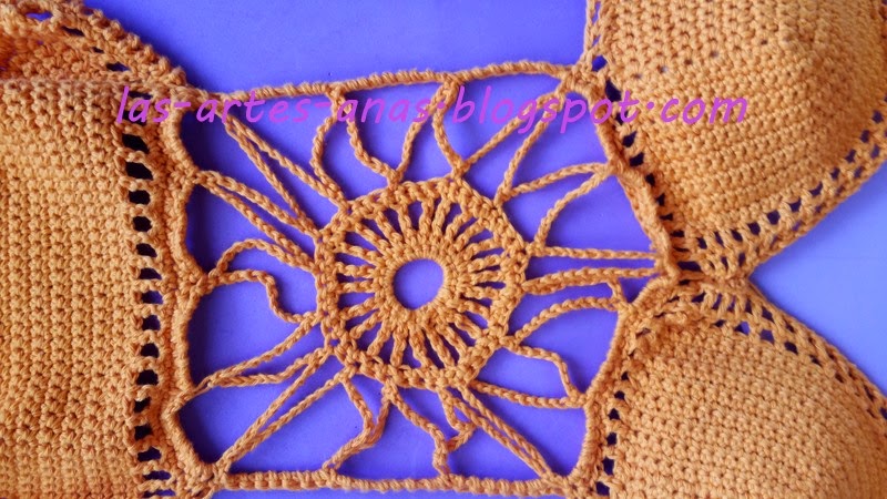 siguiendo el GRÁFICO, tejo mi mandala con puntos triples-altos, o sea, enrollando 2 veces el hilo en la aguja