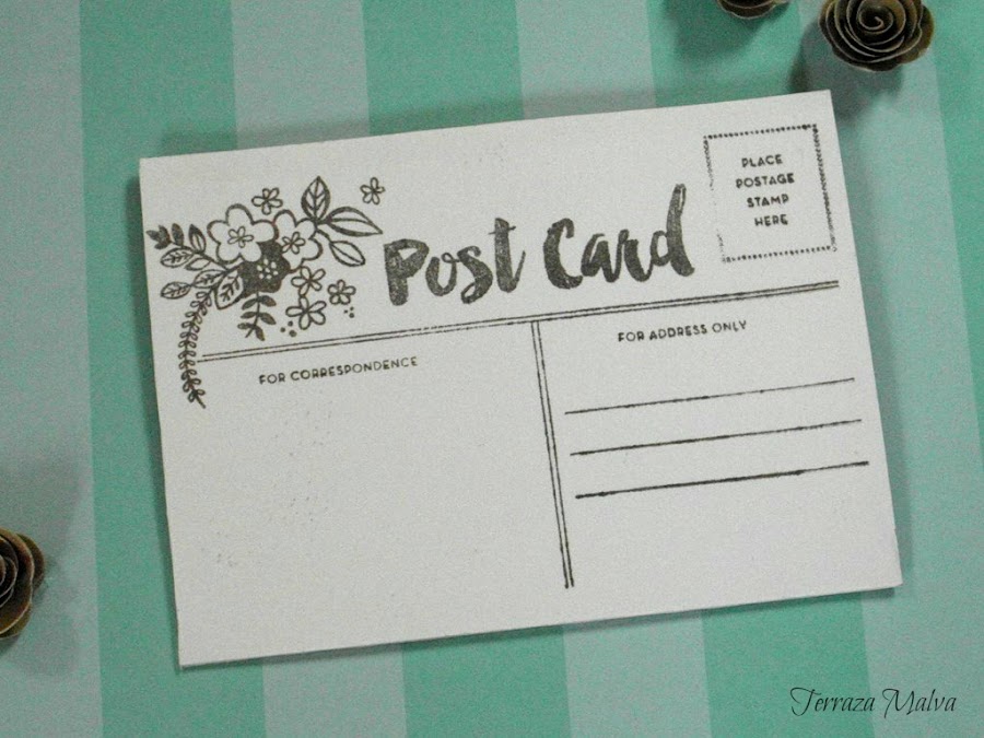 Me apetecía crear una postal, así que monté el conjunto sobre un papel Canson Aquarelle y estampé en la parte trasera el bonito sello de Amy Tangerine "Better Together".