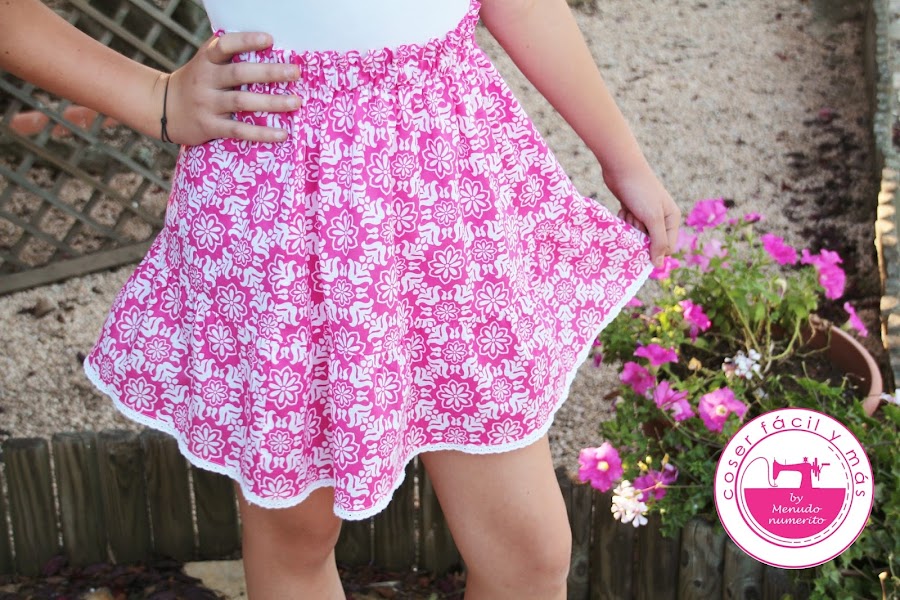 No sé si existe una proporción ideal entre un volante y la pieza de tela a la que irá cosido, pero a mí, por lo general, me gusta que el volante mida casi el doble que dicha pieza, al menos para este tipo de faldas para niñas pequeñas.