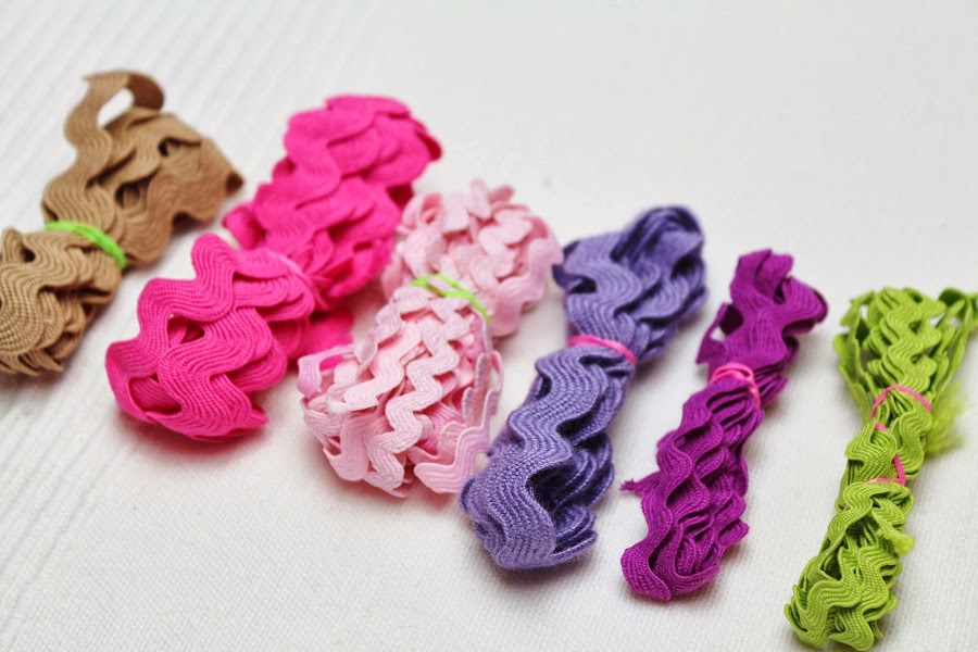 Las cintas y lazos las enrollo y les pongo una de esas gomitas elásticas de colores que venden en los bazares, así evito que se enreden entre ellas.