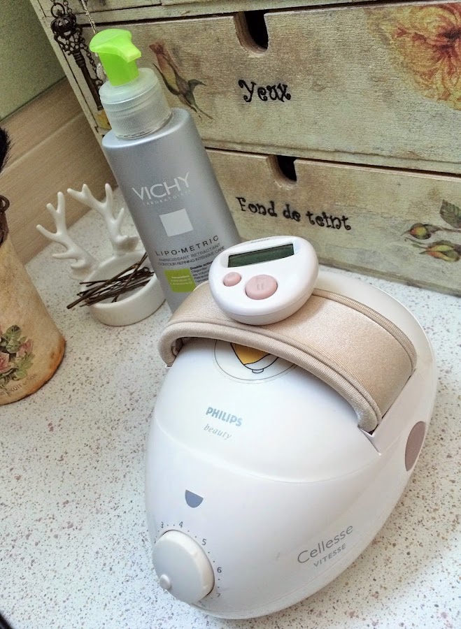 Tres días a la semana, en días alternos) me paso el Cellese; 7,5 min en cada pierna. Esto suelo hacerlo cuando los niños ya están roques. Y luego aplico la crema anticelulítica. Últimamente estoy usando esta de Vichy pero realmente me da un poco igual la crema (excepto la de Jeanne Piaubert que es la leche, ja ja pero esa no me la puedo permitir). Realmente lo que más efecto me hace es el masaje; lo tengo comprobado, use la crema que use.