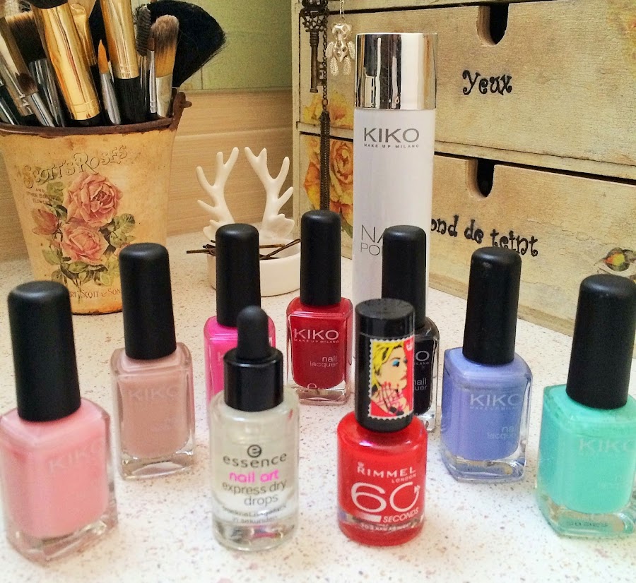 En cuanto a la manicura/pedicura: siempre siempre uso o esmaltes de secado rápido o este aceite de essence que es la leche. Aplicado sobre el esmalte mojado realmente se seca en 60 segundos. Las mamás no podemos permitirnos el lujo de estar más de un minuto con las manos quietas :P Para la pedicura uso el espray de secado rápido de Kiko. Aprovecho la peli del sábado tarde para hacerlo.
