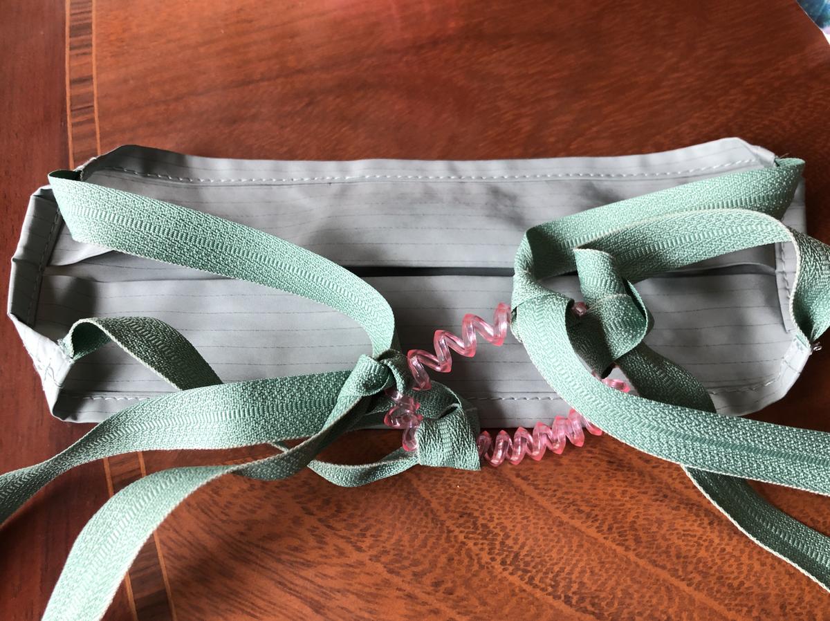 El primero es coser unos botones a una cinta de pelo para poder pasar por ahí las cintas en lugar de pasarlas por las orejas. En el vídeo de abajo se puede ver el proceso.