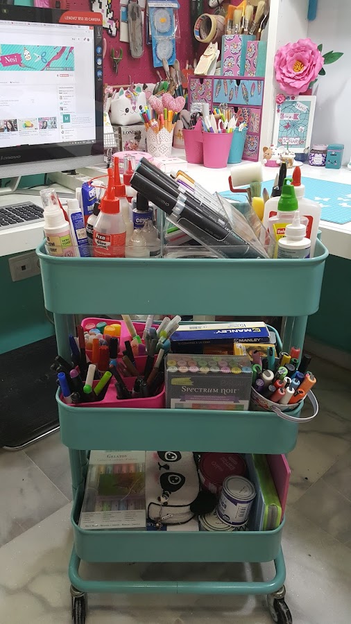 Otro gran clásico de Ikea pero que funciona de maravilla, son los carritos verduleros, con ellos puedes llevar los materiales junto a la mesa, además de poder organizarlos en sus diferentes cestos. A mi me encantan, además uno de los colores en los que lo venden, es mi color favorito. Yo me hice con dos y para mi son ya indispensables.