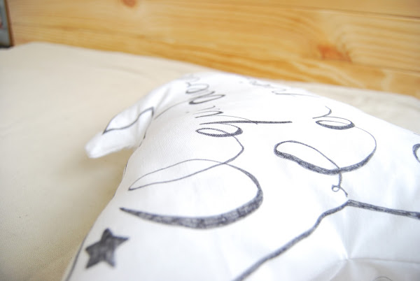 Con el mismo tutorial que ya utilizamos en el cojín de la Guerra de las Galaxias y en el cojín de Miffy, que puedes hacer en una tarde con un rotulador, tela blanca y algo de relleno.