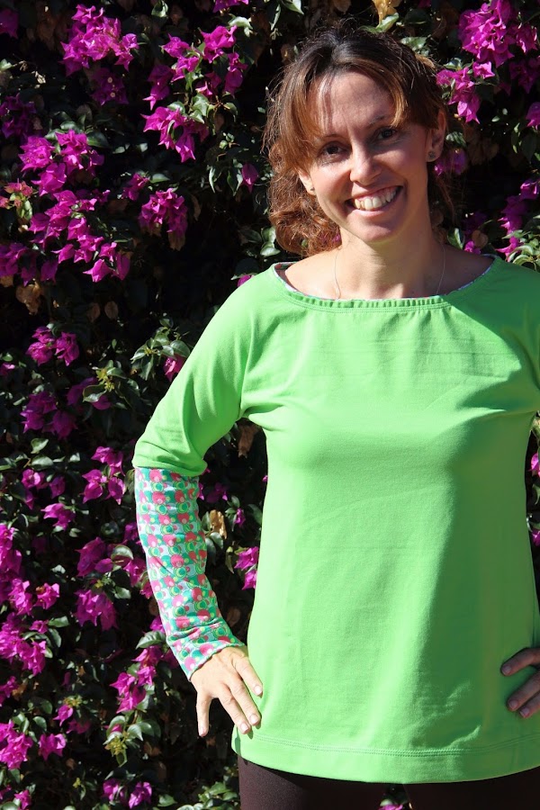 Tengo que apagar el efecto moco del delantero, si me conocéis el verde es mi color preferido, pero ni lo coso ni lo compro. Esta tela preciosa iba en la bolsa de patrocinadores del Sewing Camp (os haré una entrada para que veáis los detalles de un finde de locuras costuriles), a la tela! Es de Cal Joan y seguro que Anna me la metió para que le cosa a los peques monerías, pues no, para mi! jajaja