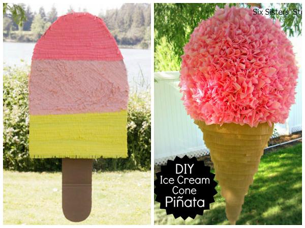 Si una guirnalda siempre viene bien en una fiesta, una piñata para los peques es sin duda una gran idea, aquí dos para cualquiera que sea el estilo de la fiesta, de polo o de helado.