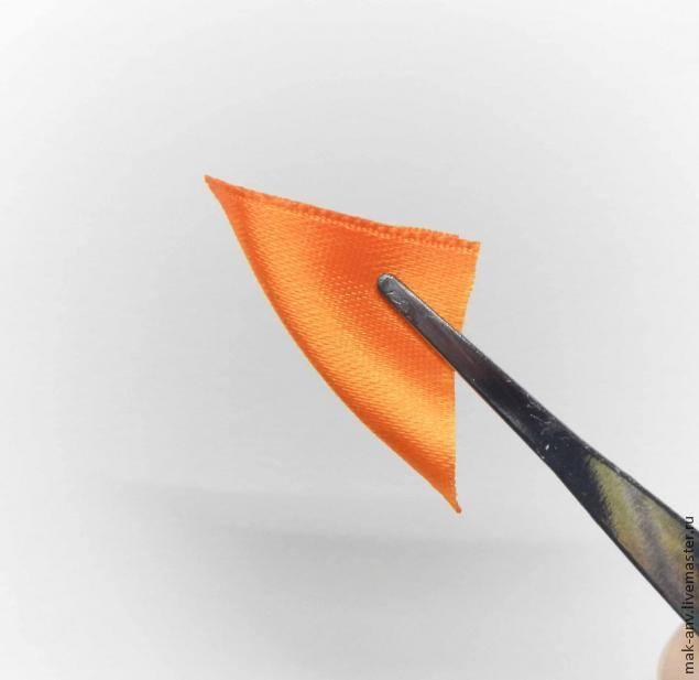 Vamos a elaborar el día de hoy linda vincha con tulipanes de cintas raso. Para este proyecto necesitamos cintas de 2,5 cm de ancho. Cada pétalo requiere corte de cinta de 4 cm de largo. Un tulipán nec ...