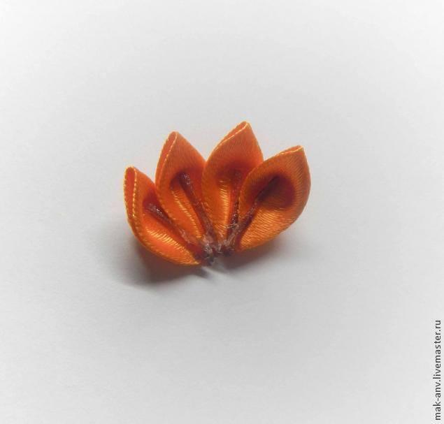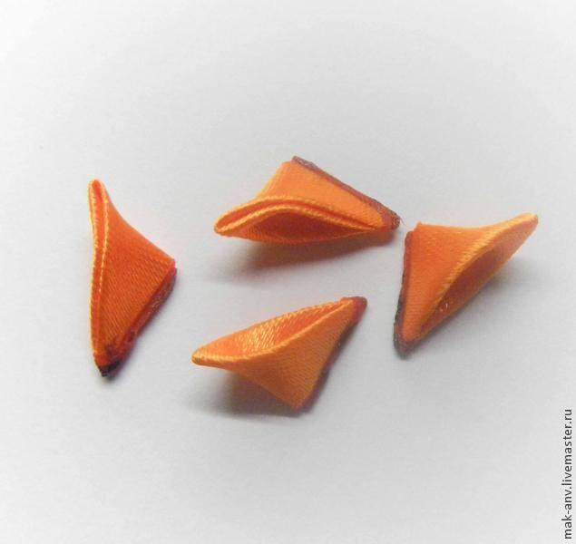 Hoy vamos a elaborar una hermosa flor kanzashi de pétalos voluminosos de cinta raso. Para este proyecto necesitamos cuadrados de cintas de 4 cm de ancho. En total son 27 cuadrados para cada flor. Dobl ...