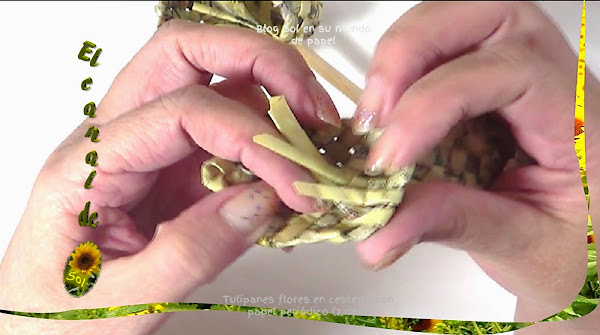 La varilla que nos queda sola la doblamos por atrás siguiendo el entretejido normal y de la misma forma la tejemos con las demás