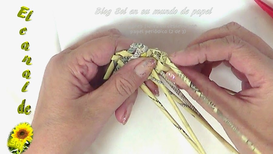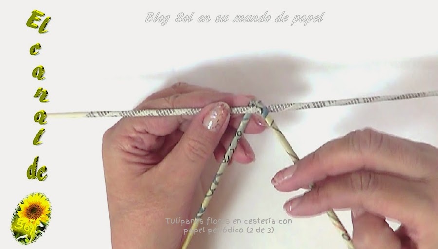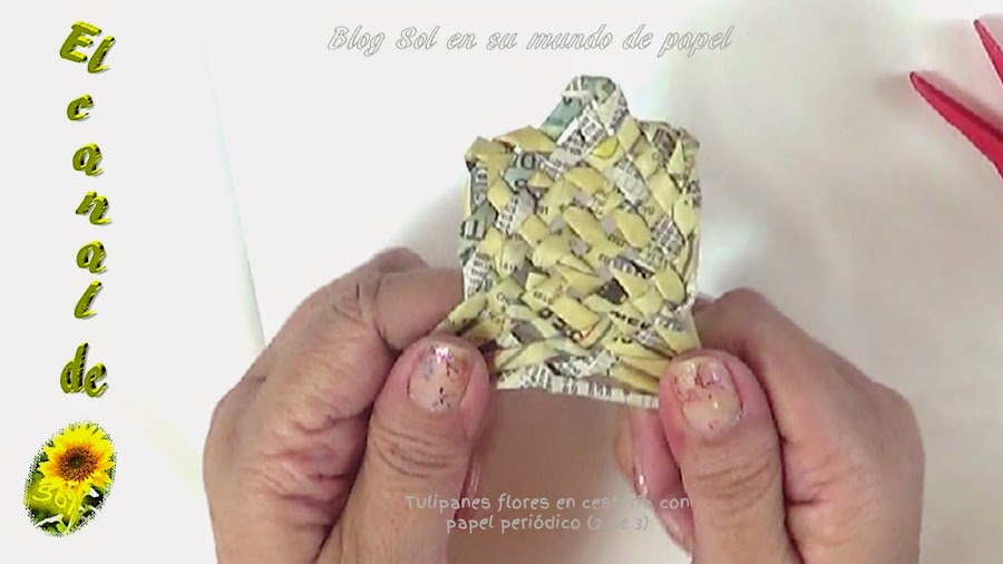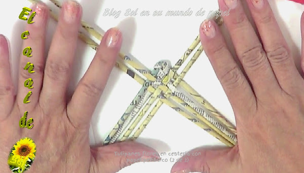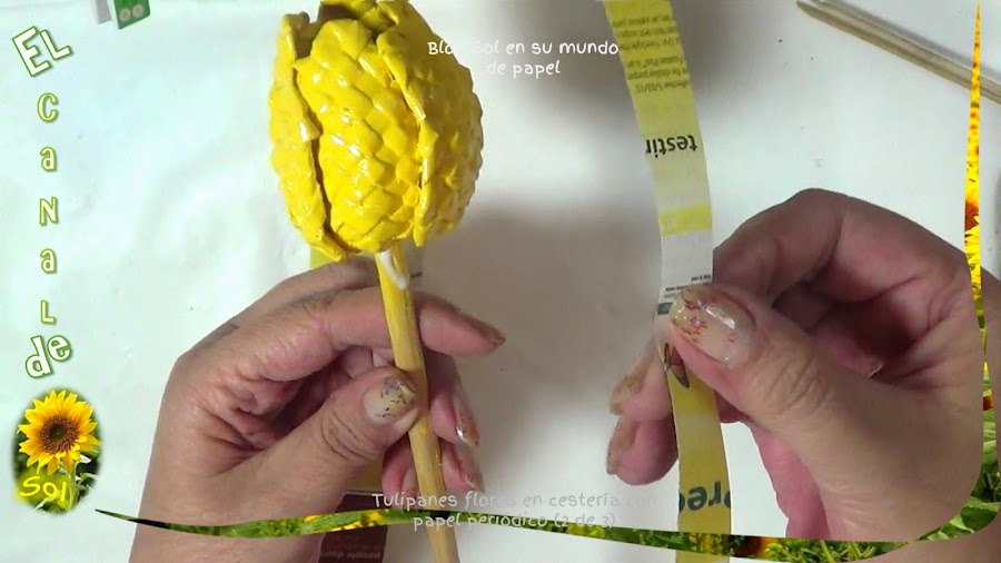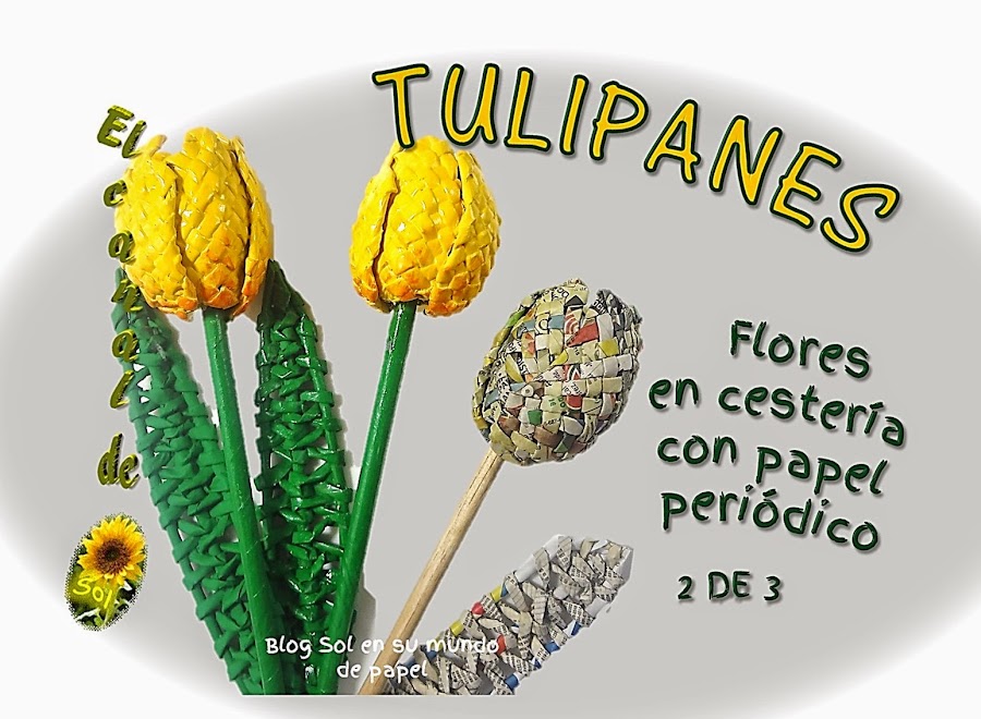Tulipanes, flores en cestería con papel periódico 2 de 3