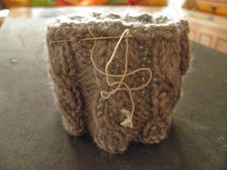 Le pedí a mi madre, que teje esupendamente, que me hiciera como unos puños de ochos con lana gris. Y luego yo les cosí, por la parte de dentro en uno de los extremos, unos elásticos.