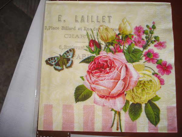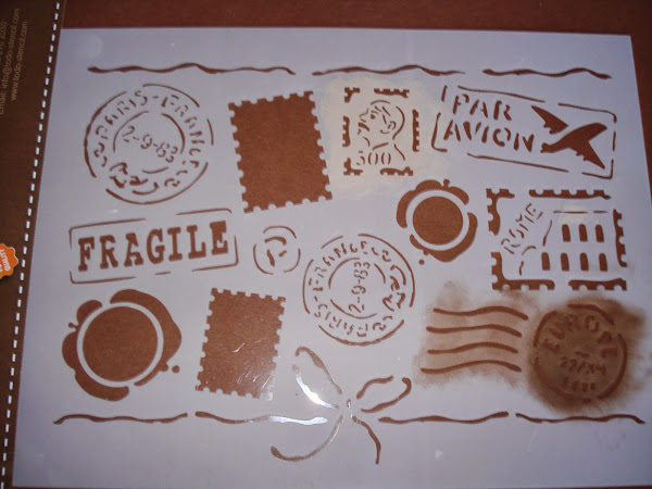 Pegada y seca la servilleta, estarcí con una plantillas unas palabras, sellos,.. como por ahora tengo muy pocas, no tengo que romperme mucho la cabeza.