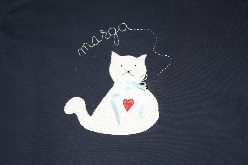 Muy, muy sencillita...........aplicación con fiselina de doble cara.......y los detallitos a puntada atrás......algún adornillo.....un cascabel.......(aquí tenéis el paso a paso).