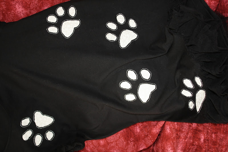 Era tan, tan.......pero taaaaaaaaaaaannn negra que había que darle un toque que le diese color, alegría y vidilla.....así que al final se decidió por las huellas de un gato que le pise ""toa, toita"" la camiseta.