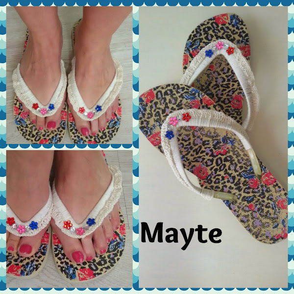en verano son de lo mas socorrido las chanclas de dedo, y a mis juanetes le van de maravilla, así que ni corta ni perezosa le he dado oto toque, lo vi en Pinterest