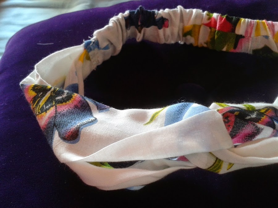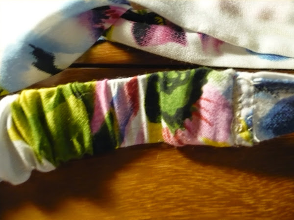 No tenía ningún turbante cruzado de los que se han puesto de moda, y tenía tela de flores de una blusa de media manga que desmangué, tampoco tenía tutoriales que colgar, así que maté tres pájaros de un tiro y me decidí a hacer este turbante. Tuve que descoserlo y volver a coserlo tres veces porque me hice un lío macabeo con la tela y la goma, pero al final estoy muy satisfecha con el resultado :)