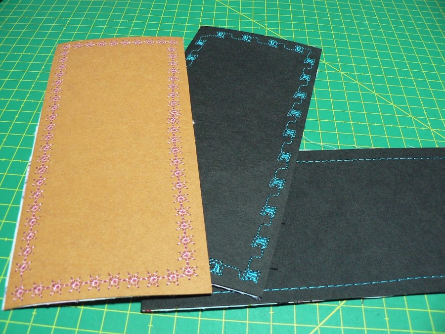 Ahora recortamos las dos piezas de fieltro. Podéis jugar con los colores de la tela para hacer un conjunto, ponerlas diferentes.... Vamos a coserlas al kraft tex con un pespunte recto por el centro de las piezas de manera vertical y por el interior. El fieltro será las hojas de nuestro libro. Yo uso dos piezas y me son suficientes, porque luego en el libro quedan cuatro hojas. Si necesitas más de cuatro hojas, añade otra pieza de fieltro.
