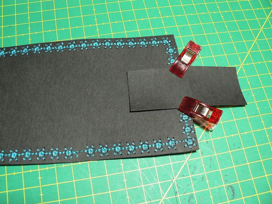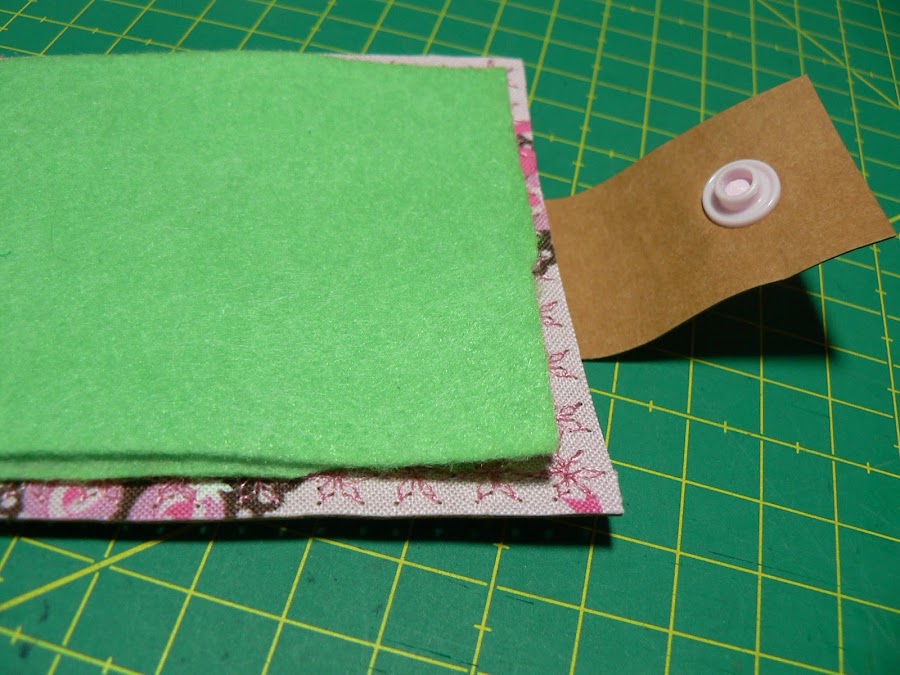 Ahora centramos la pieza pequeña de kraft tex en uno de los lados (va a ser el trasero de nuestro librillo, tenedlo en cuenta si hacéis alguna decoración) Y cosemos un pespunte recto o un zig zag para unir las dos piezas.
