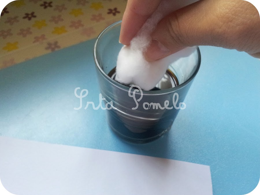 Lo primero que vamos a hacer es preparar una zona donde poder trabajar sin manchar nada. Después vamos a coger un trocito de algodón y lo vamos a mojar en el café.