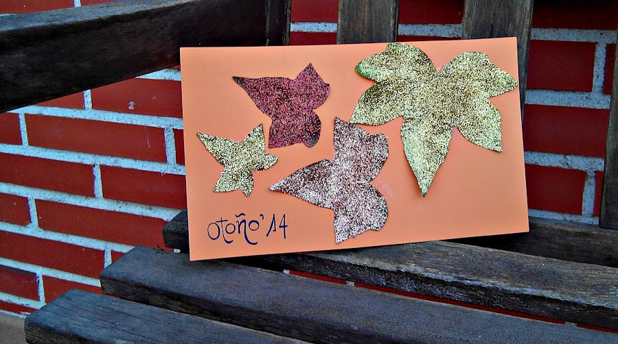 Sólo necesitaremos hojas secas, purpurinas de colores y una cartulina. Os animo a que veáis el tutorial y que me deis vuestra opinión. Un abrazo para todos y os deseo un feliz comienzo de semana.