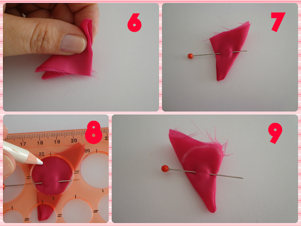 6. y 7. Sostener y mantener doblado con ayuda de un alfiler.