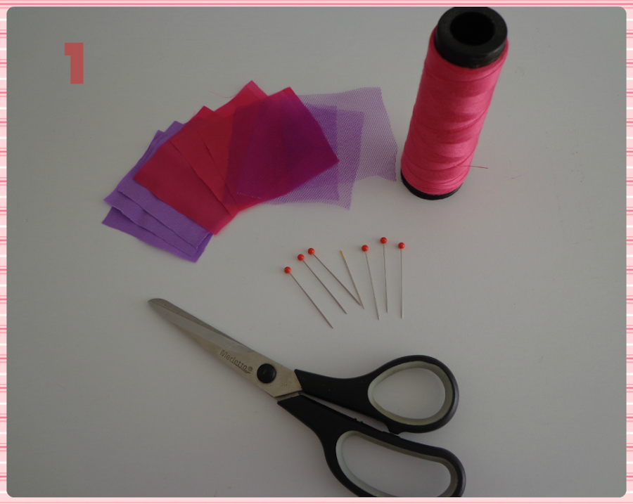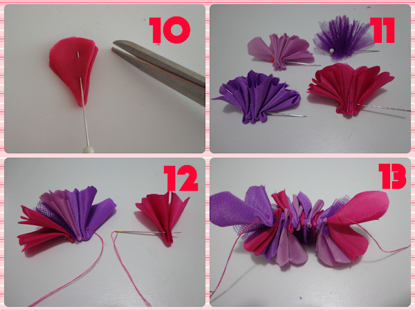 11. Colocar los pétalos separados por colores en alfileres, como indica la imagen.