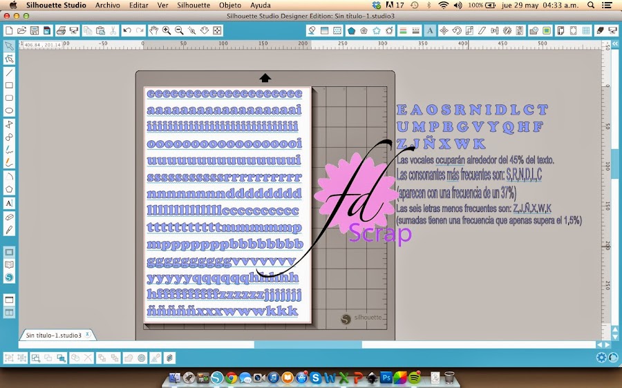Después de tener ya saber con qué material lo iba a hacer, vino la duda. Cuántas letras entran en una hoja y de cuáles hago más o de cuáles menos.