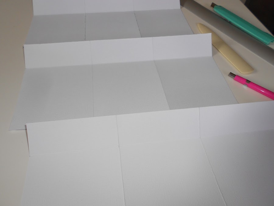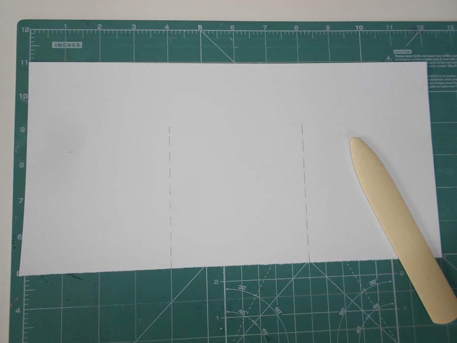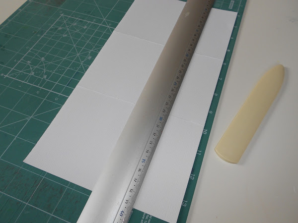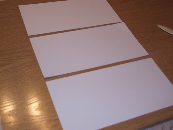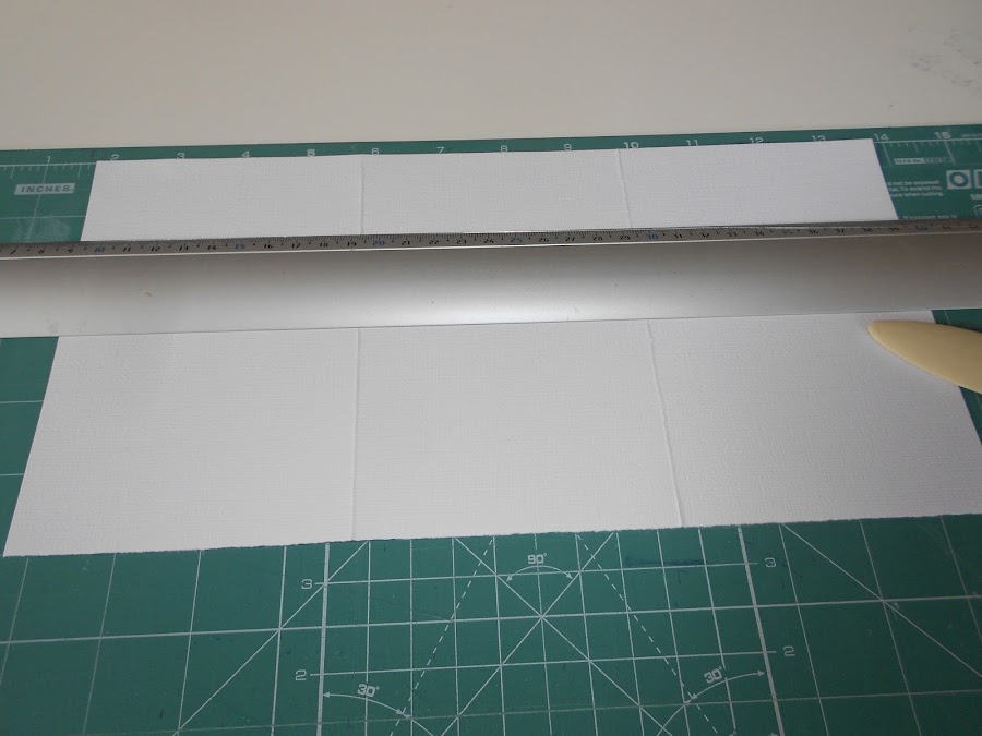Ahora tenemos que dividir cada una de ellas en tres partes y hacer un hendido como en la siguiente foto , si lo hacéis en pulgadas sera a 4" y 8" y si lo hacéis en centímetros sera mas o menos a 1016cm y 2032cm