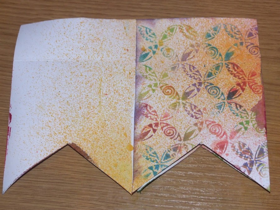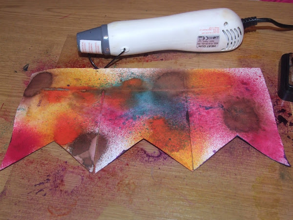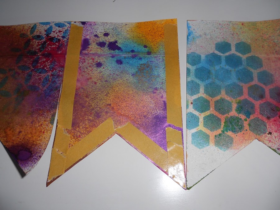 Con las tintas en spray hay , que tener cuidado ya que no siempre cae donde queremos , pero tampoco hay que tener miedo , siempre queda bien!! si veis que se queda muy empapado pasarle el rollo de papel de cocina rodando por encima absorvera la tinta sobrante y quedara perfecto