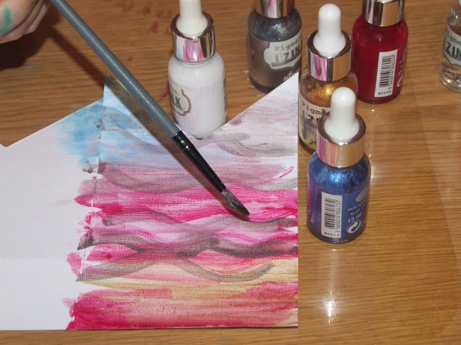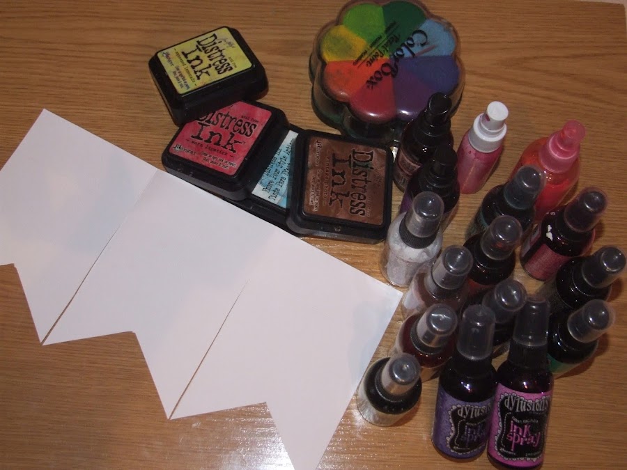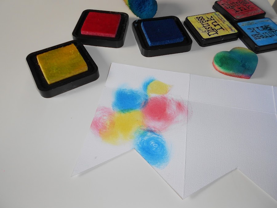 Una vez cortados ya todos los picos pasamos a guarrear con las tintas , para todas aquellas que en esto del guarreo con tintas o mix media seáis nuevas , voy a enseñaros algunos truquitos , que espero que os sirvan