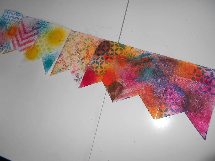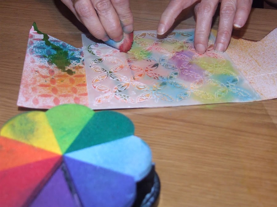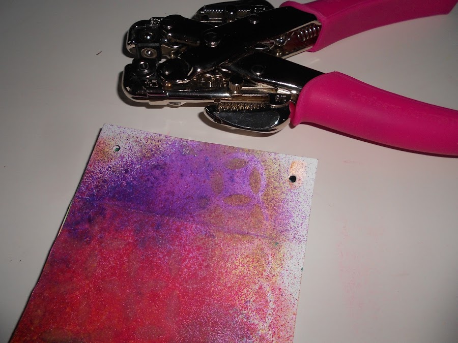 Podemos dejarlo secar o secarle con un secador y pasar al siguiente , también podemos seguir poniéndole tintas con las plantillas por encima