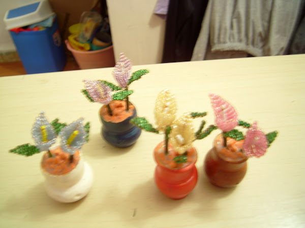 Chaquiras de 2 colores (una el color del color de la flor y la del pistilo)