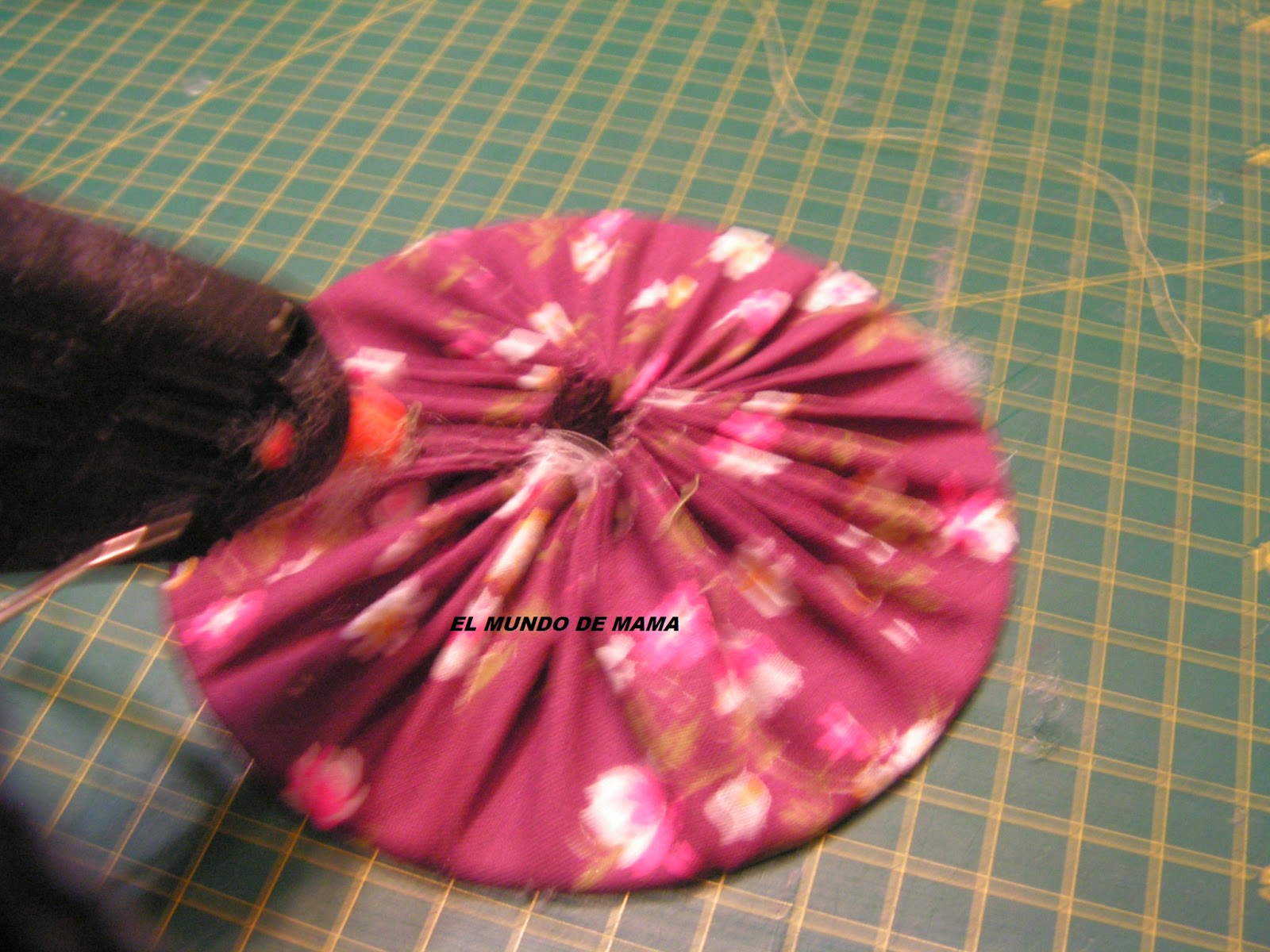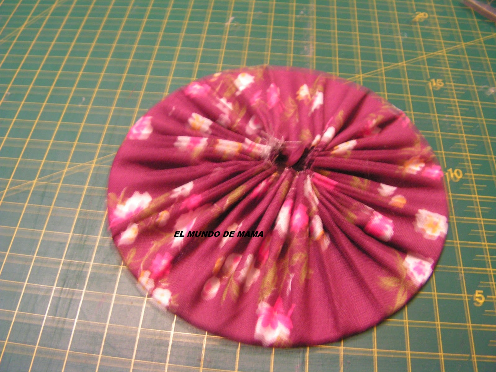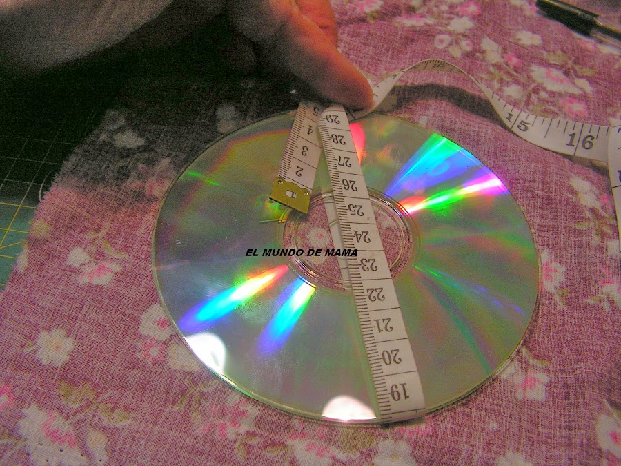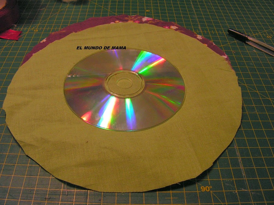Asi que he buscado un plato mas grande( en mi caso es el de postre) que el cd, para cortar la tela ya que me tiene que cubrir todo el cd.