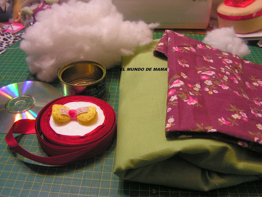 1 CD VIEJO 1 LATA DE ATUN, BIEN LAVADA( yo la dejo un rato en agua con lejia) 2 TROZOS DE TELA GUATA DE RELLENO CINTA DE ADORNO 1 ALGUN ADORNO QUE NOS GUSTE, LAZOS FLORES BOTONES ETCETC.