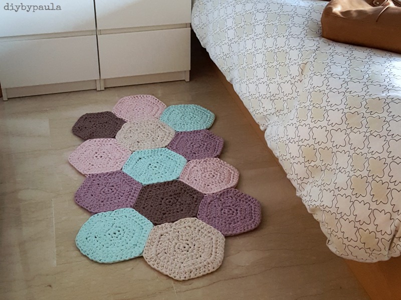 Te muestro mi primera alfombra hecha con muestras de hexágonos ,donde he aprendido cometiendo errores y por eso te doy consejos a tener en cuenta si vas ha realizarla.