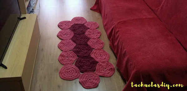 Porque no solo podemos crear una alfombra con este tutorial ,también un camino de mesa o mantel y además es multiforma o sea que uniendo los hexágonos puedes crear muchos diseños diferentes.