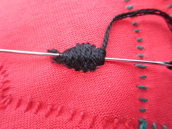 Cuando se nos acabe el hilo tenemos que clavar la aguja un poco más adelante del último festón y rematar el hilo.