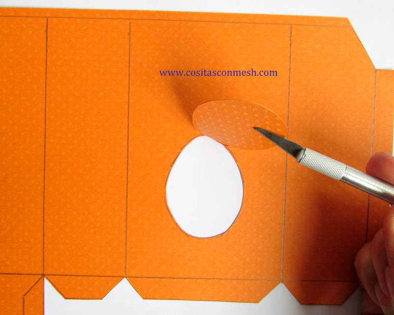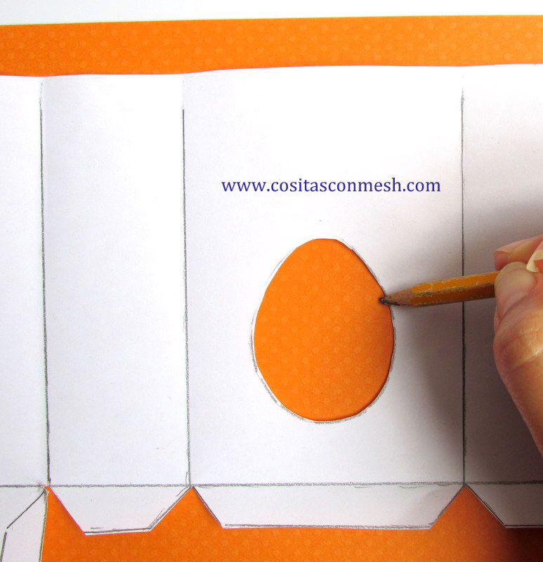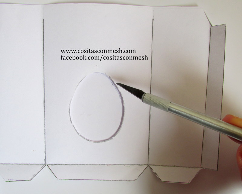 2.- Ya que tengas el molde, con un cúter o exacto corta el dibujo del huevo que viene en el molde de la caja.