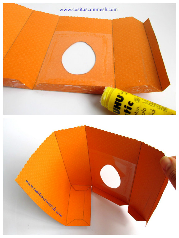 Luego uno las pestañas inferiores y así se ira armando la cajita de pascua para regalo.