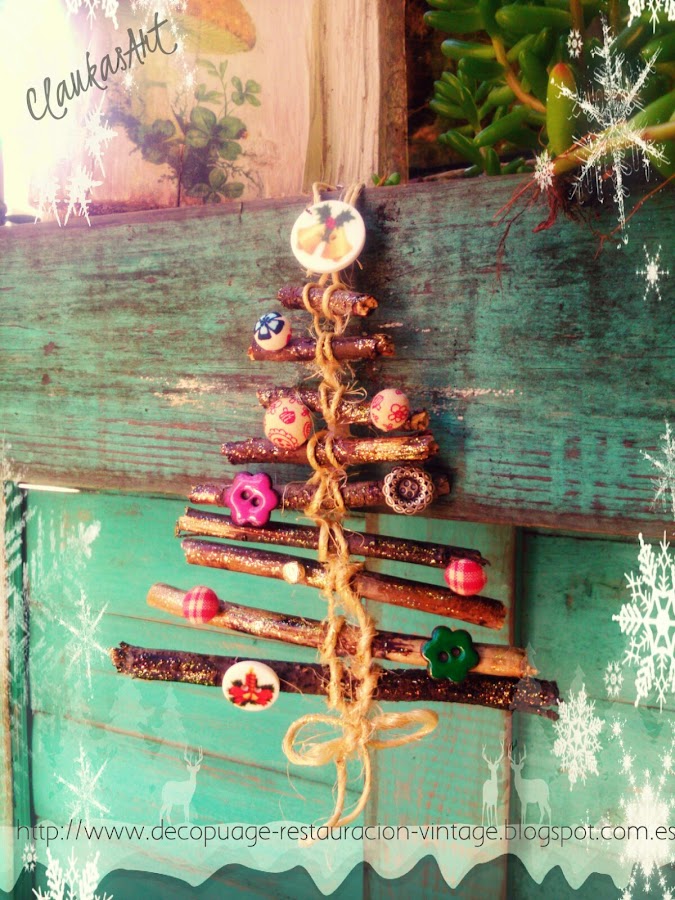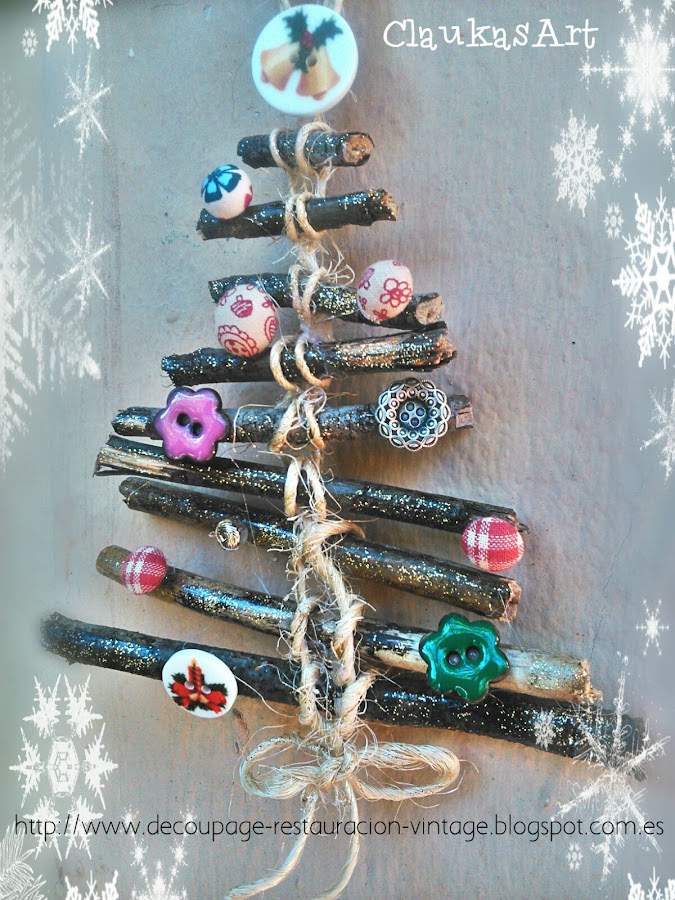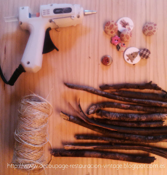 Los palitos hay que cortarlos de manera que queden con forma de triángulo cuando se alineen todos de mayor a menor. Con una cuerda se van atando haciendo un nudo en cada palo. En el extremo de arriba tenemos que pensar en hacer un bucle para poder colgarlo.
