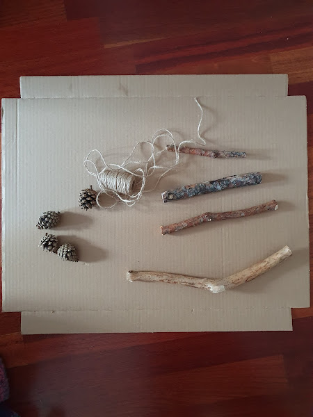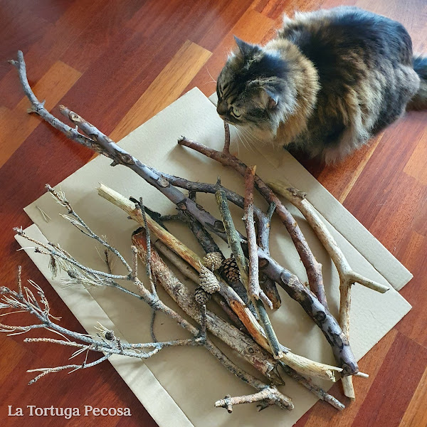 El Sr. Búho y yo nos fuimos a la sierra madrileña a pasar un agradable dia al aire libre, recogimos ramitas y alguna piña y cuando llegamos a casa, las lavamos y dejamos secar (normalemnte en una noche se secan).
