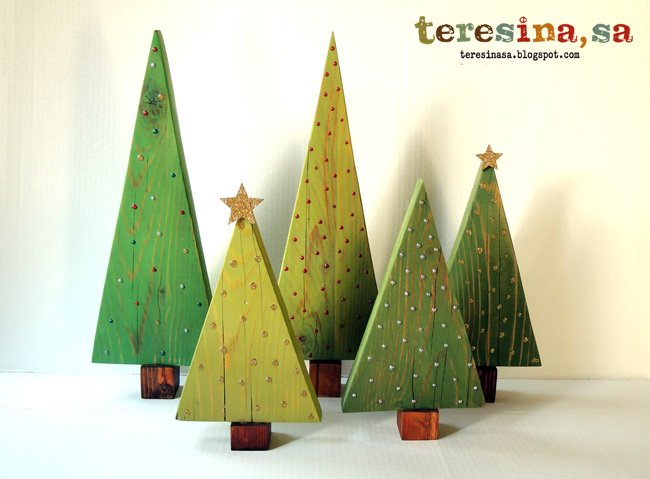 Para empezar, unos arbolillos de navidad hechos con maderas recicladas. Quedan bien en cualquier lugar y admiten infinidad de decoraciones.