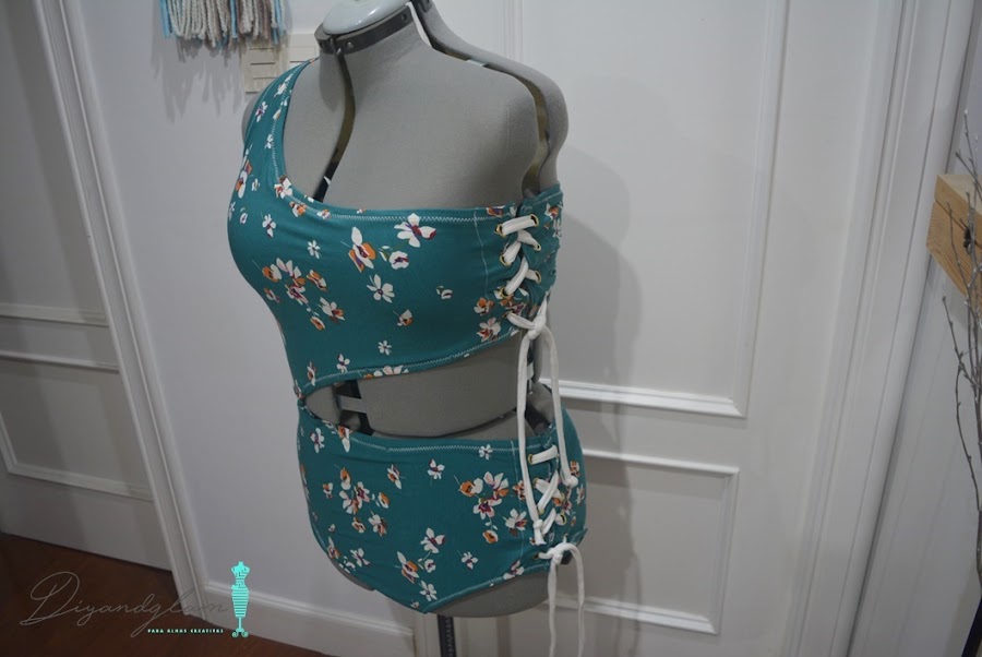 El tutorial de esta semana pertenece a la serie "Cose conmigo patrones gratis" y esta vez he elegido este bañador/trikini/tanquini, no sé muy bien como calificarlo