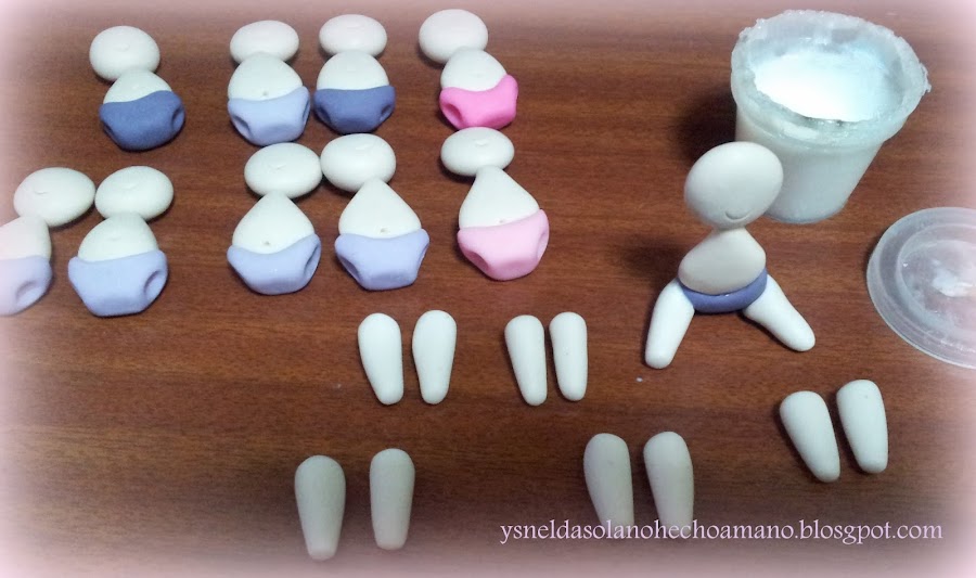 5.- Los piecitos son pequeños triángulos y con la esteca se realizan cuatro marcas para simular los cinco deditos.