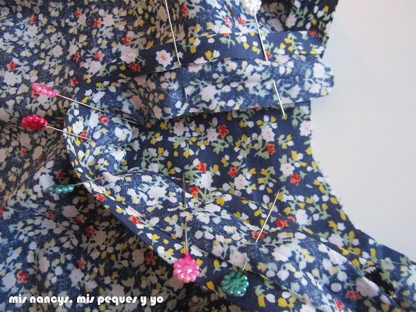 CUIDADO: Acordaros de mantener las costuras abiertas de los hombros cuando estéis doblando el bies del cuello.