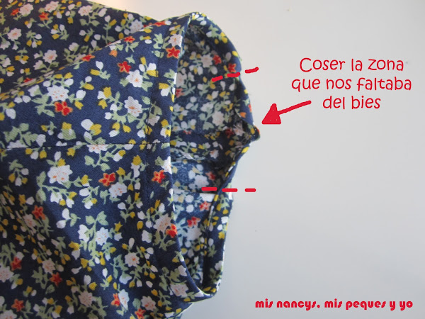 Y ya podemos rematar bien nuestro bies escondido de la sisa, para quede uniforme la costura del costado con la costura del bies.